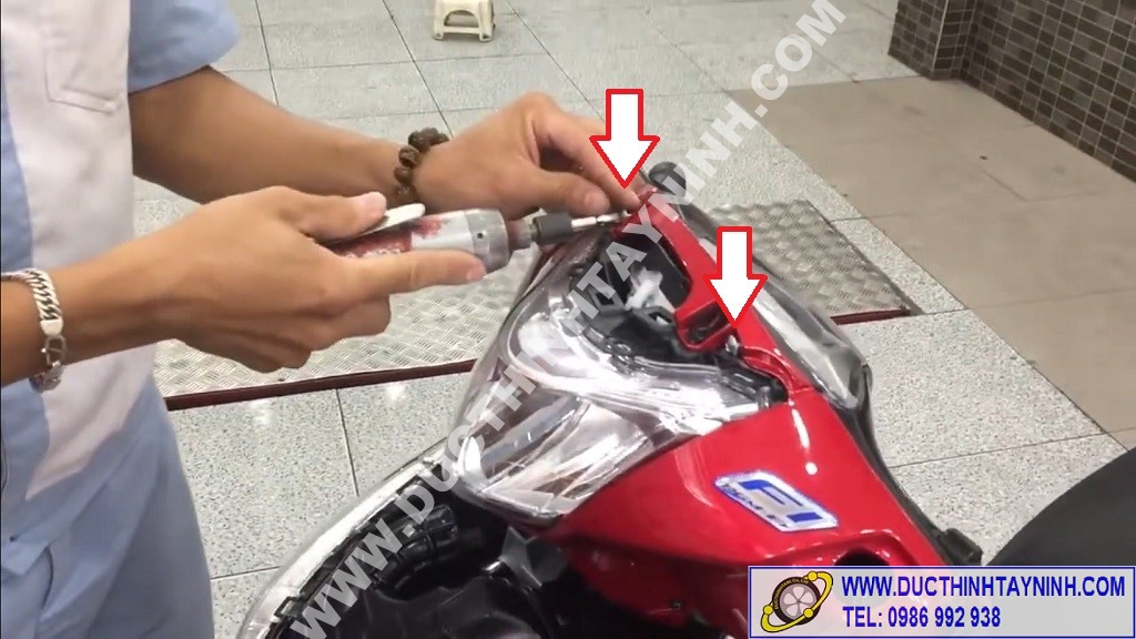 Mở cụm đèn pha : tháo tổng cộng 6 ốc vít