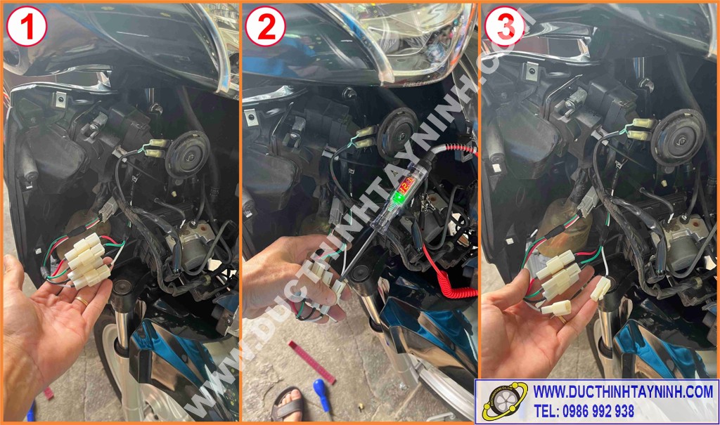 - Dùng bộ Jack Test để xác định dây dương (+) và dây tắt máy (Acc)