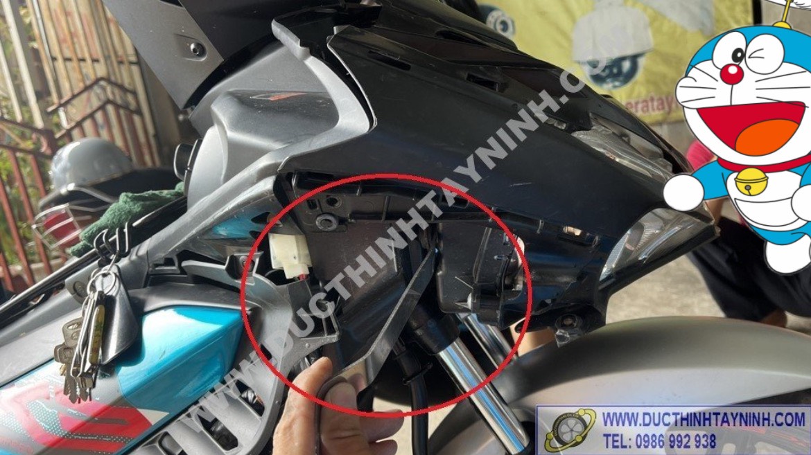 - Ta tiến hành đấu nguồn vào ngay đuôi dây của ổ khóa.