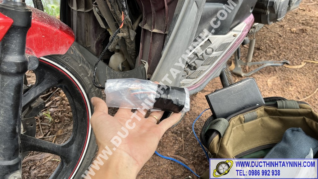 - Hình ảnh lắp đặt định vị xe máy thực tế của kỹ thuật Đức Thịnh Tây Ninh