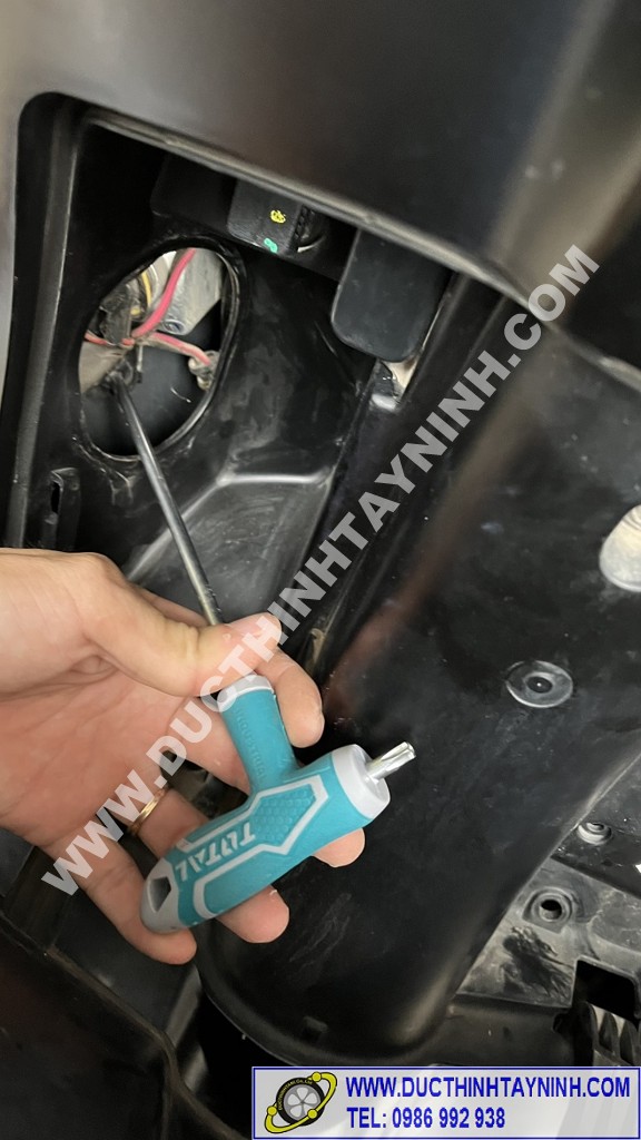 Tháo ốc lục giác nằm sâu phía trong sau hộp cầu chì