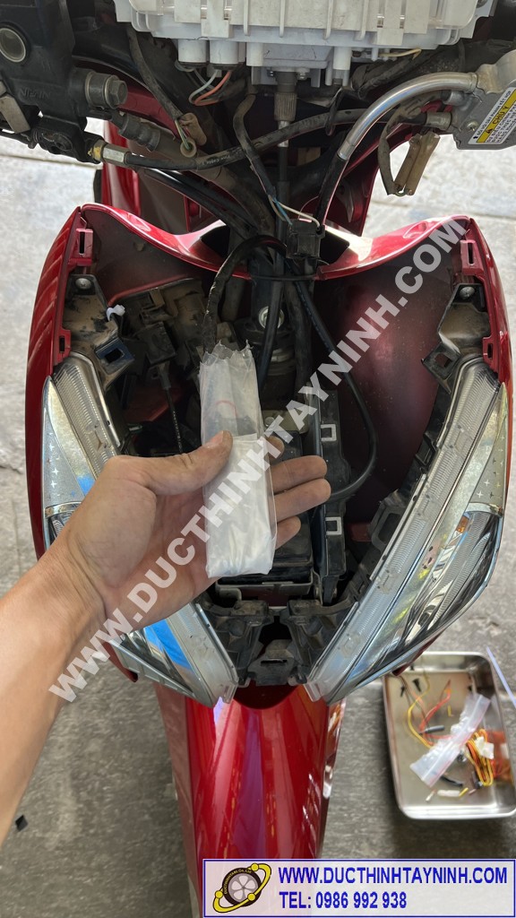 - Hình ảnh lắp đặt định vị xe máy thực tế của kỹ thuật Đức Thịnh Tây Ninh.