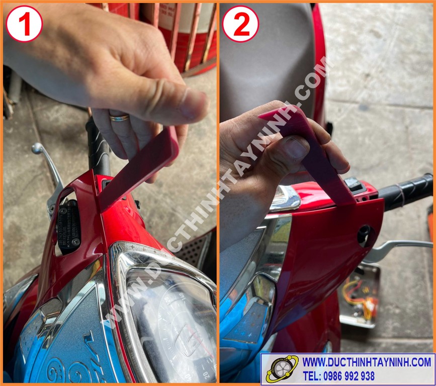 Dùng nạy nhựa nạy 2 bên mép ra trước