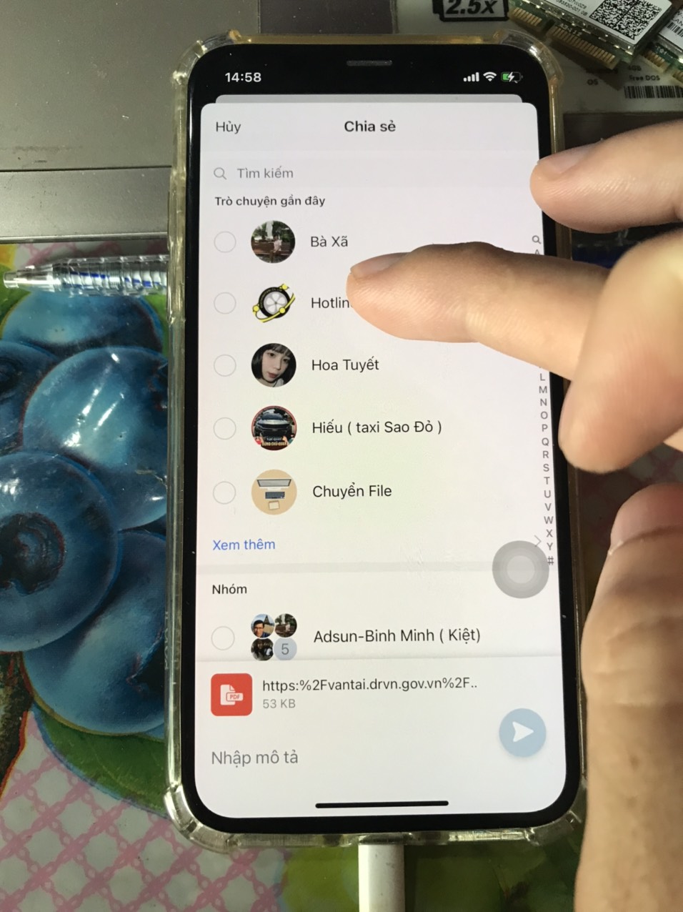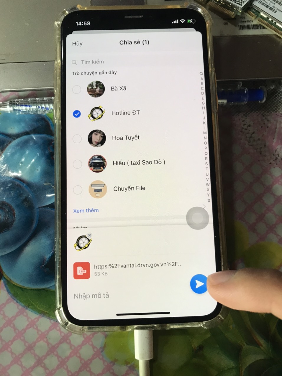 Chọn tên 1 ai đó trong danh sách bạn bè trên zalo để gửi file
