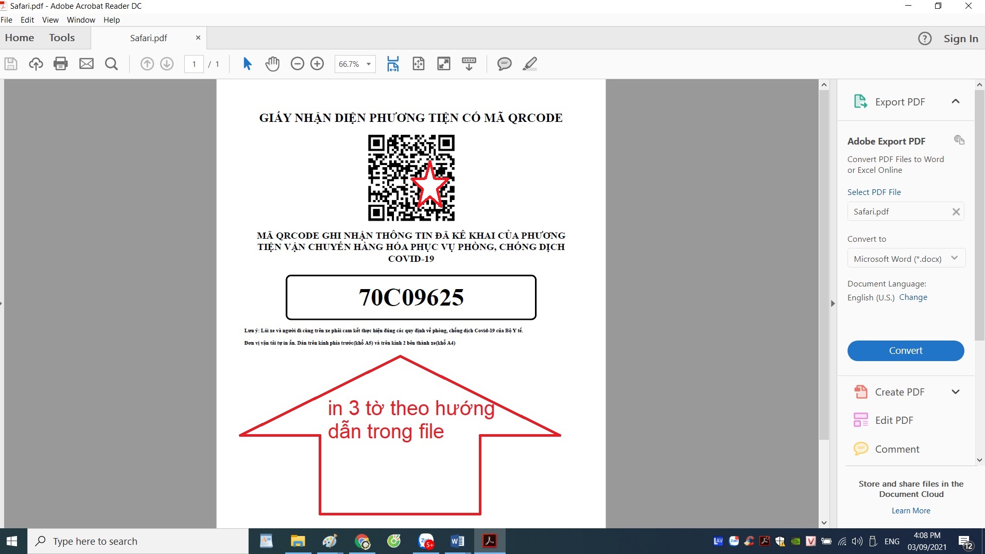 Sau khi ra tiệm in ta gửi File mã QC này qua zalo của tiệm để nhờ họ in ra 3 tờ như hướng dẫn trong file
