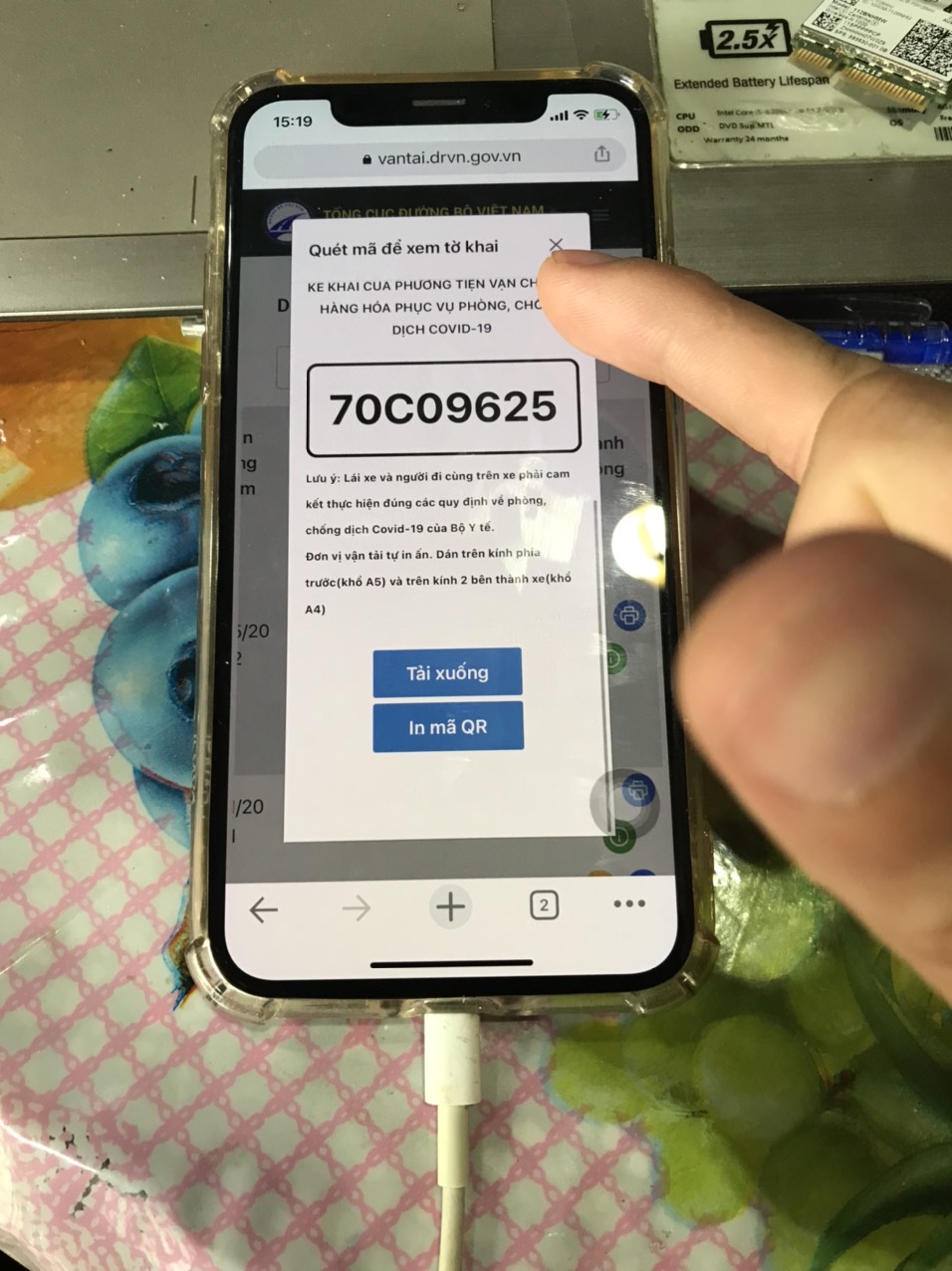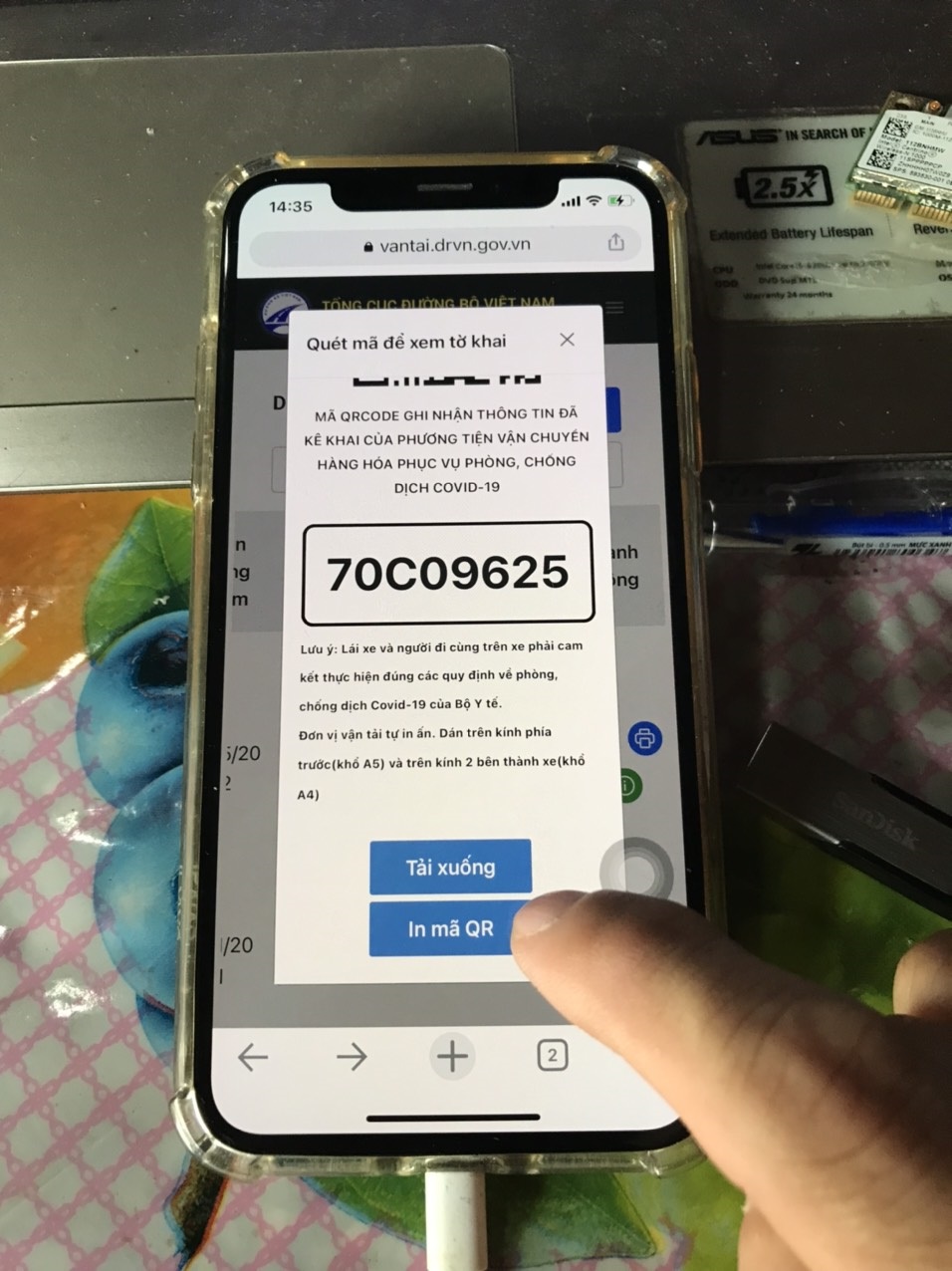 Sau khi quét lên ta thấy 2 mục : "Tải xuống" và "In mã QR "