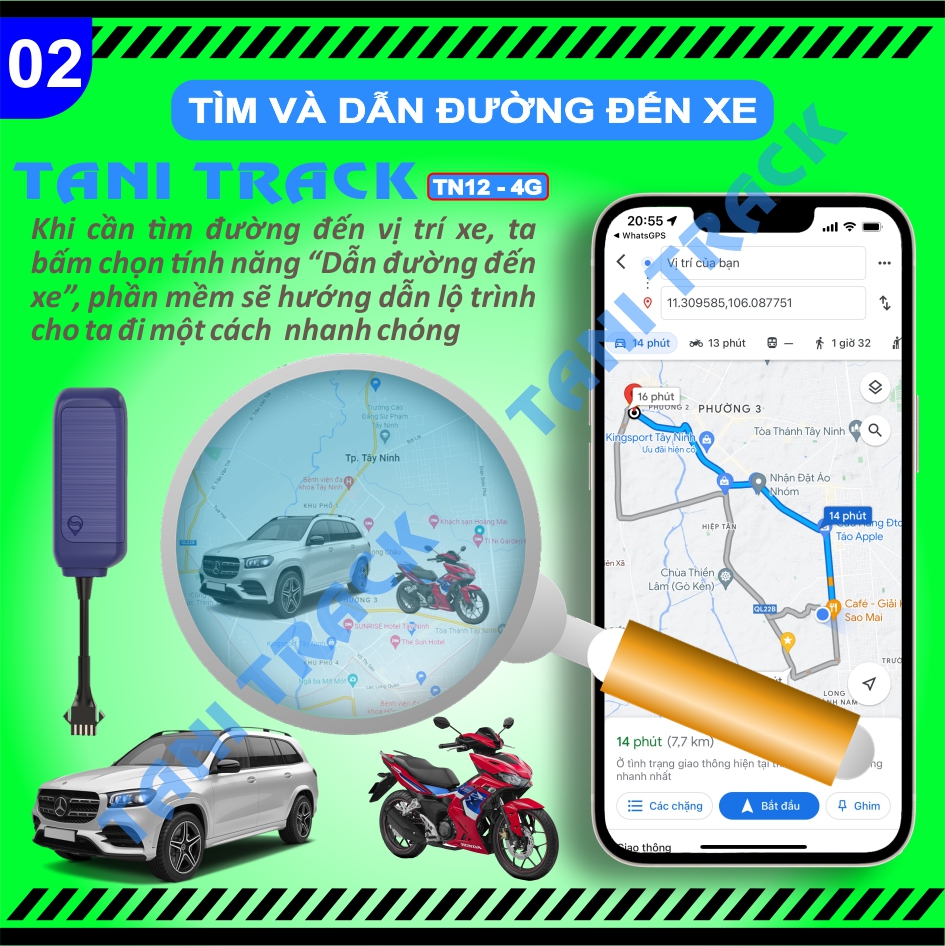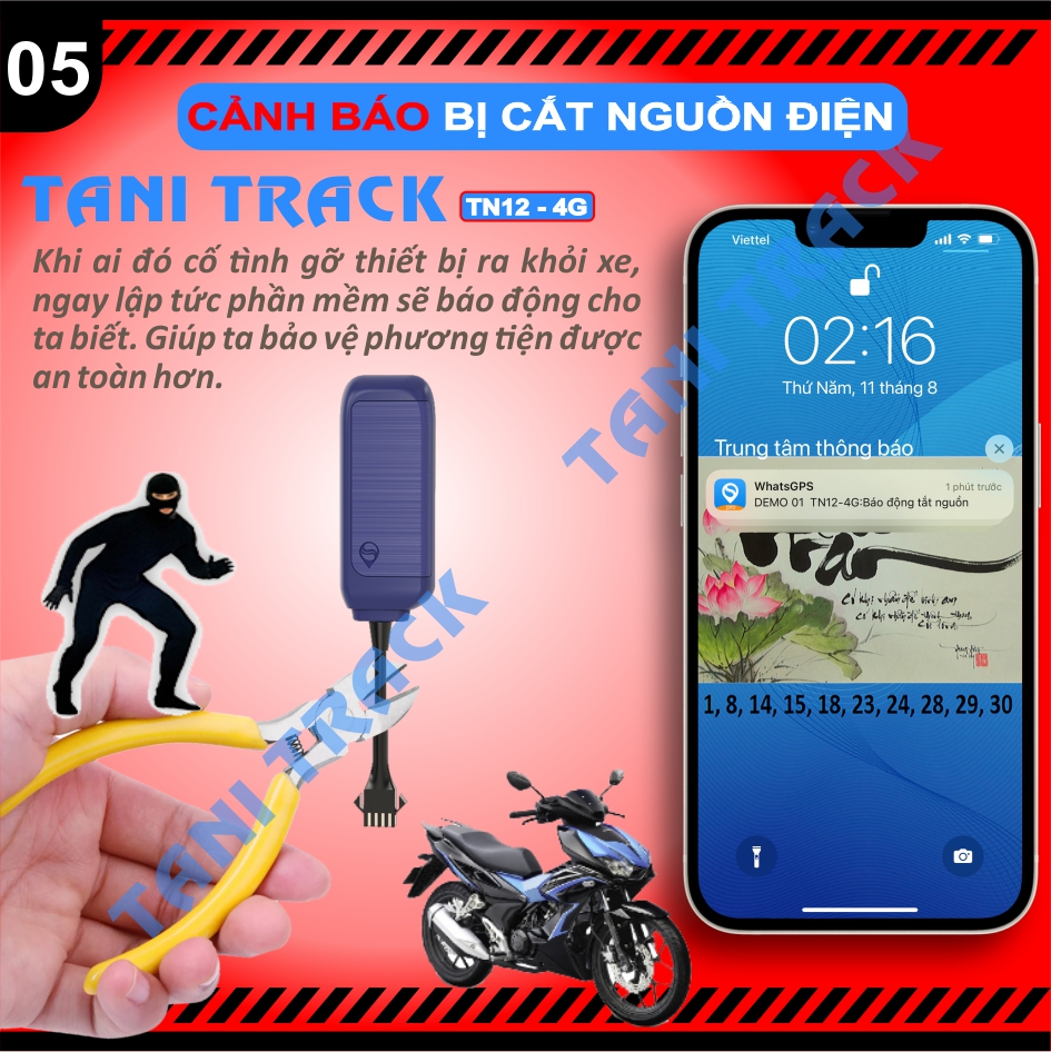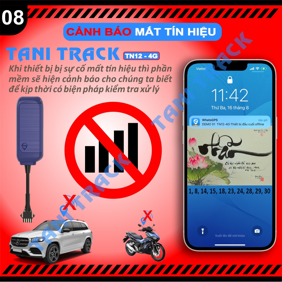 - TaniTrack TN12-4G sử dụng chíp sóng di dộng 4G tốt độ cao mới nhất hiện nay.