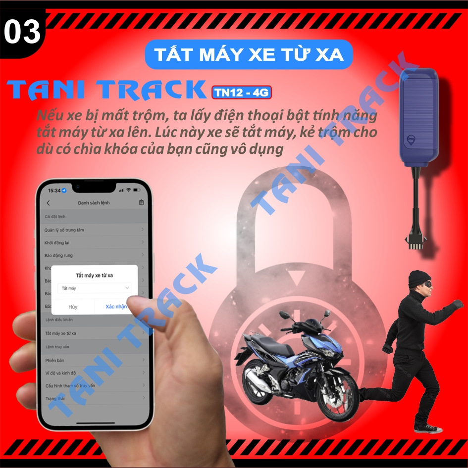 Nếu xe bị mất trộm, ta lấy điện thoại bật tính năng tắt máy từ xa lên. Lúc này xe sẽ tắt máy, kẻ trộm cho dù cho dù có mở được khóa xe cũng vô dụng vì xe không thể nổ máy được