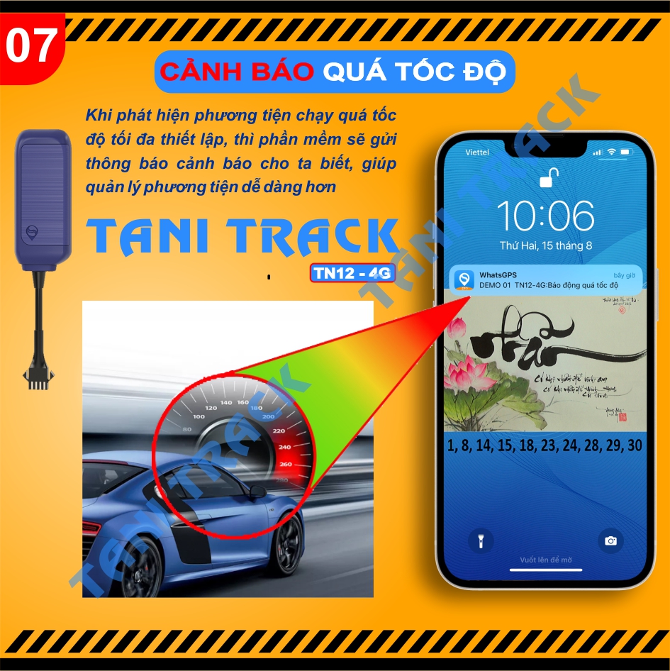 Khi phát hiện phương tiện chạy quá tốc độ tối đa đã thiết lập, thì phần mềm sẽ gửi thông báo cảnh báo cho biết, giúp ta quản lý phương tiện dễ dàng hơn