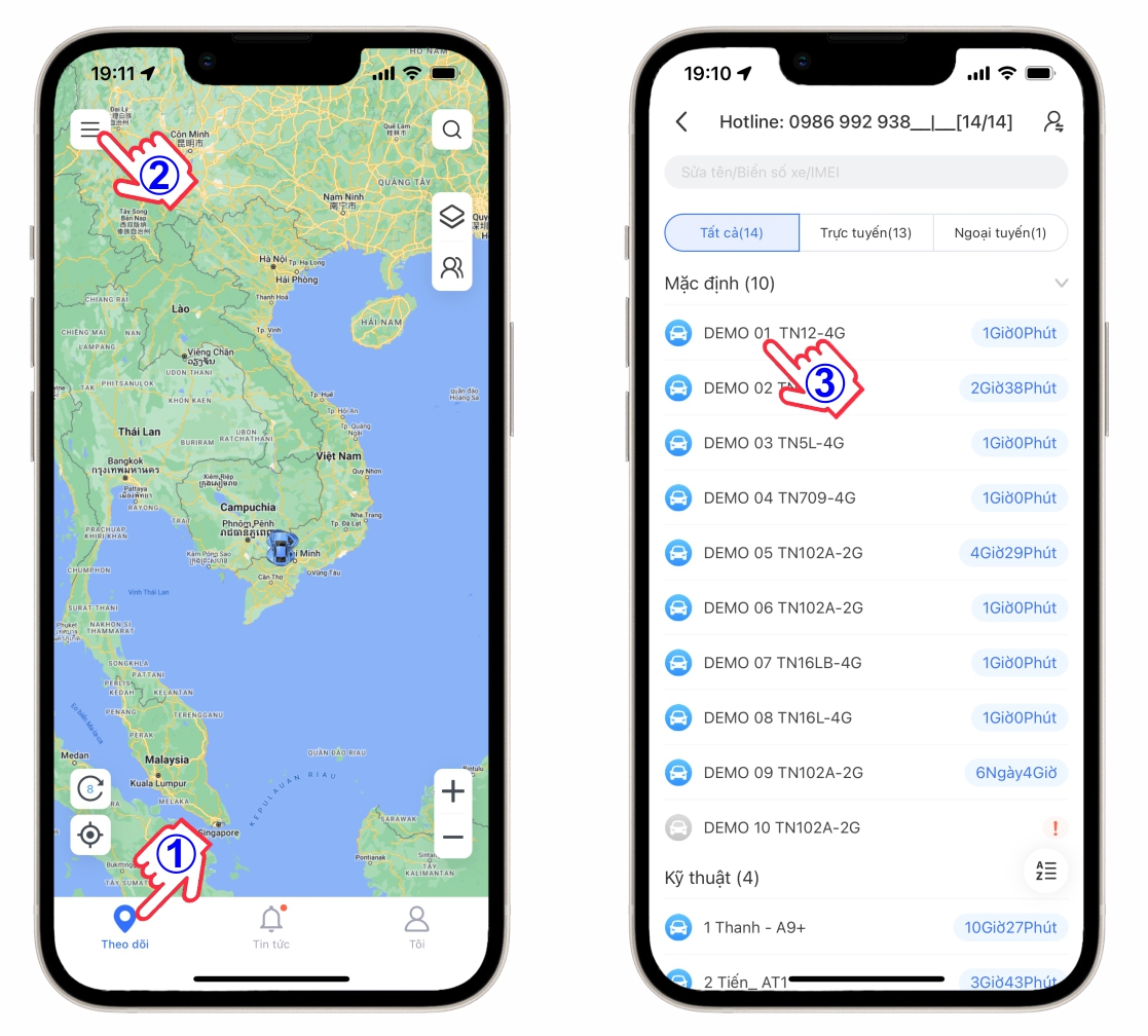 01. Theo dõi vị trí và xem lại hành trình trực truyến liên tục 24/24