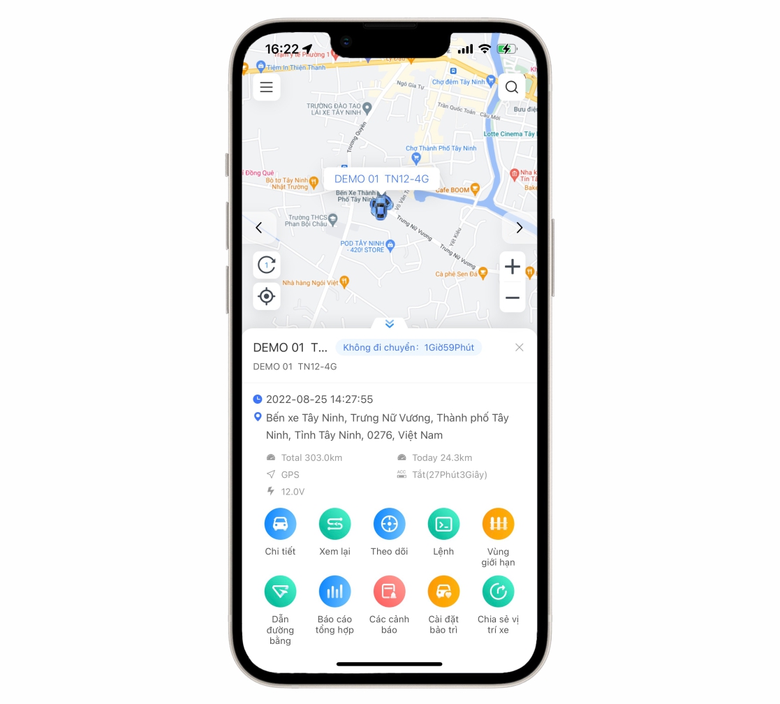 - Xác định trạng thái xe đang tắt máy, mở máy hay đang chạy với tốc độ bao nhiêu km/h.