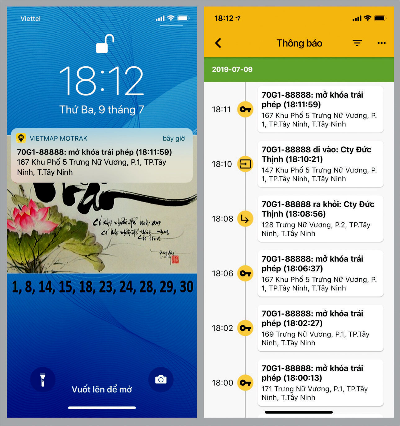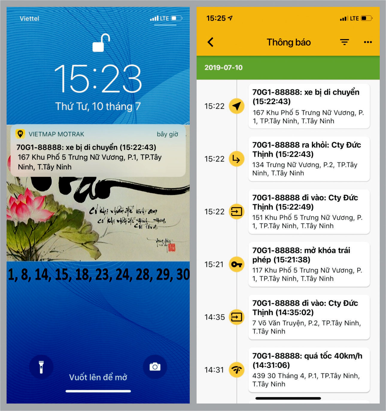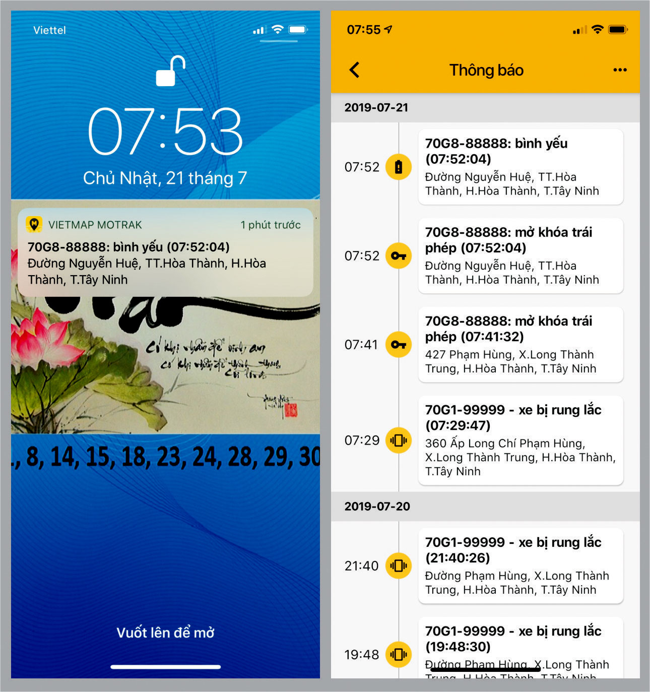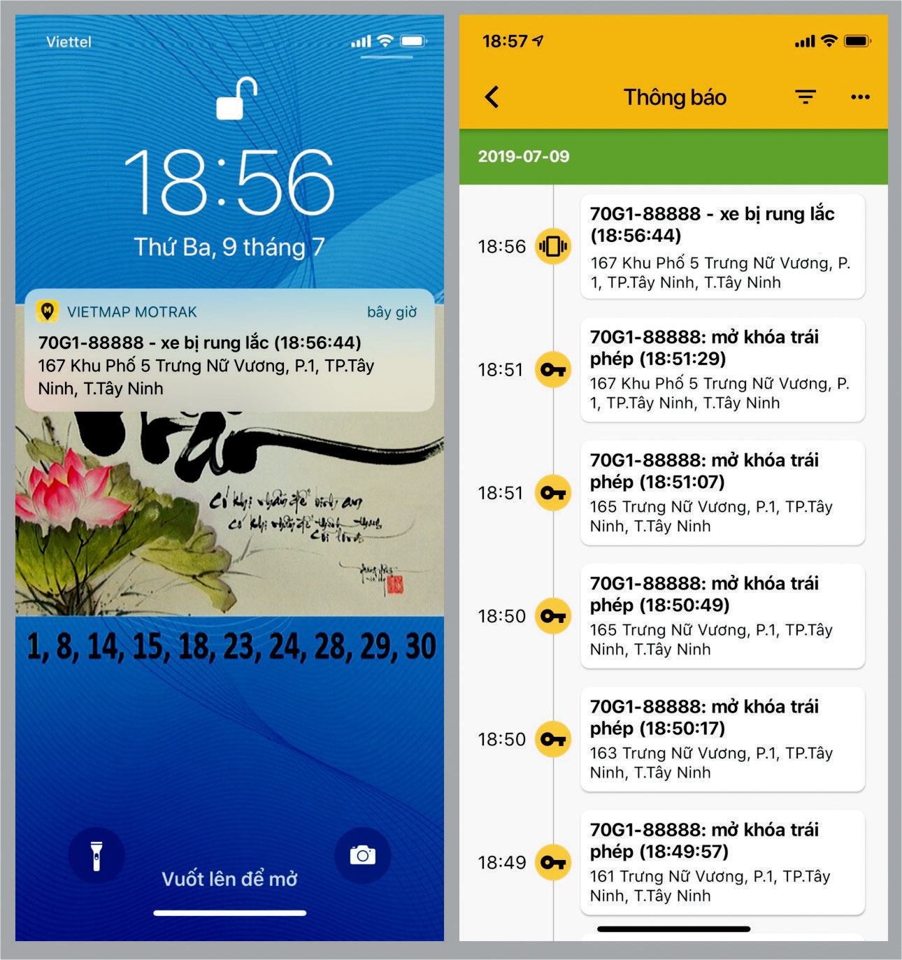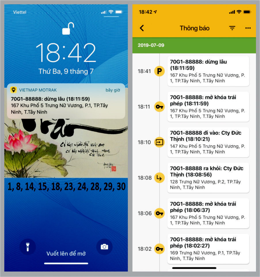 + Cảnh báo “Xe bị rung lắc”: khi xe đang đậu mà có người đụng vào làm rung xe thì trên phần mềm sẽ báo cho ta biết xe bị rung lắc.