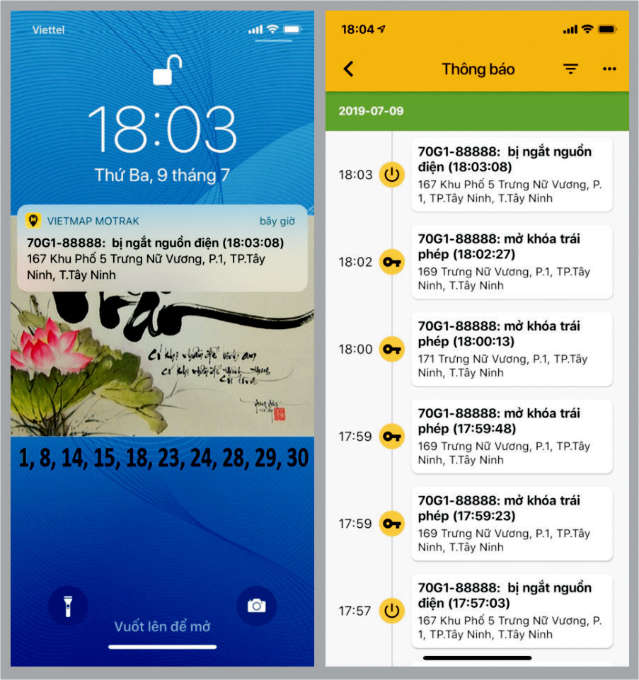 - Trong trường hợp kẻ trộm cắt nguồn điện, tháo thiết bị ra khỏi xe thì thiết bị vẫn hoạt động vì có pin dự phòng, lúc này trên phần mềm sẽ thông báo người dùng biết thiết bị đã bị ngắt nguồn điện vào thời điểm lúc mấy giờ, ở vị trí nào.
