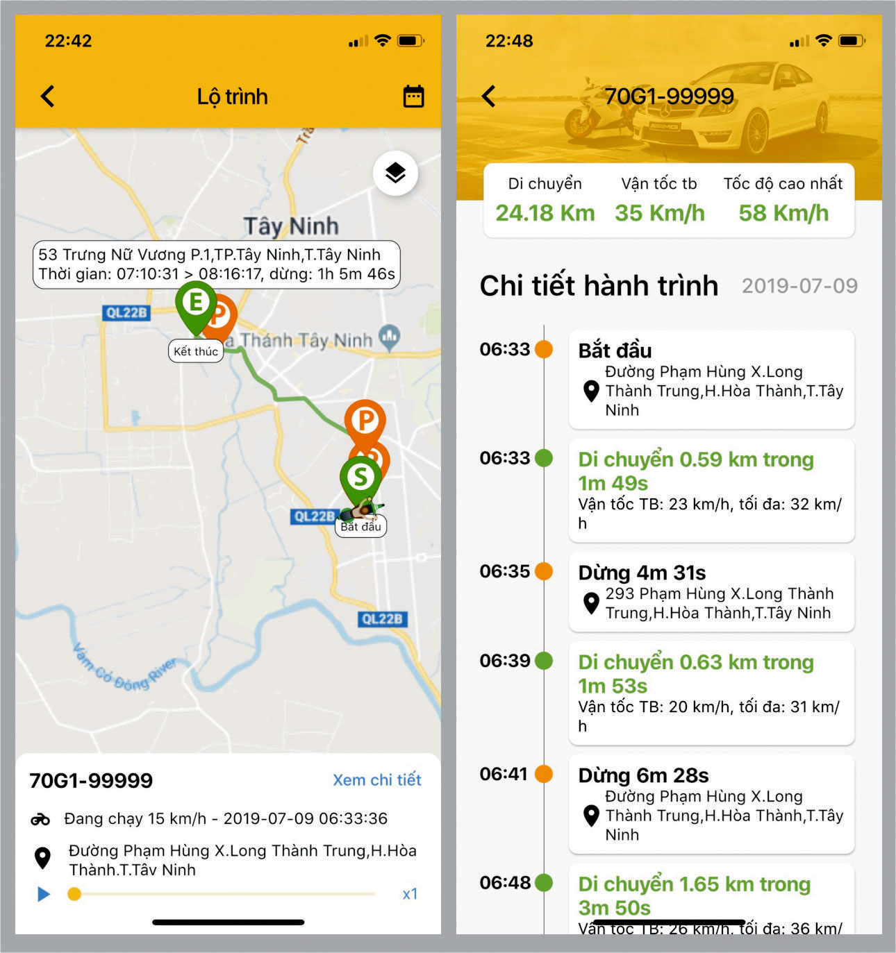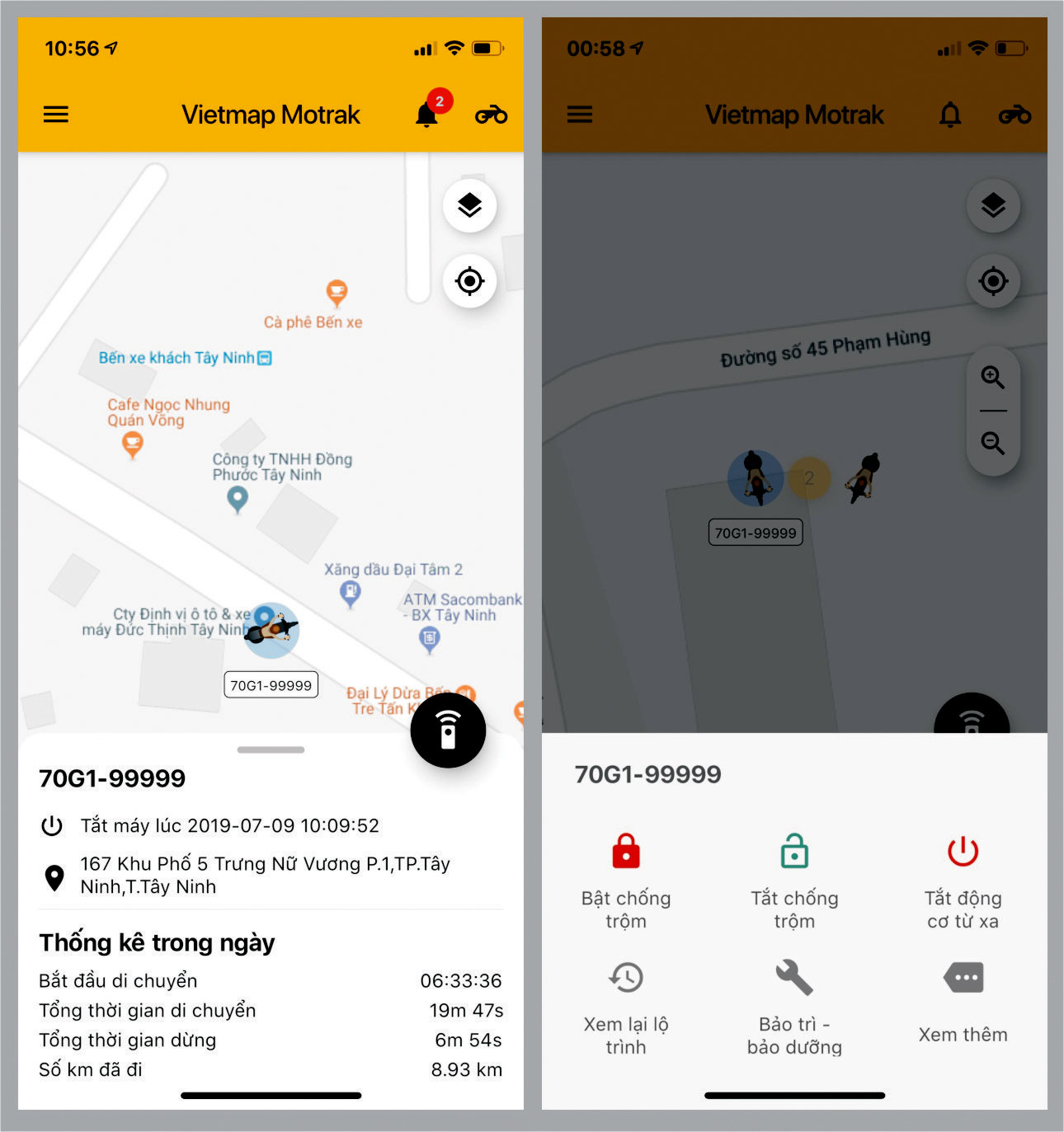 - Trạng thái xe đang tắt máy, mở máy hay đang chạy với tốc độ bao nhiêu km/h.