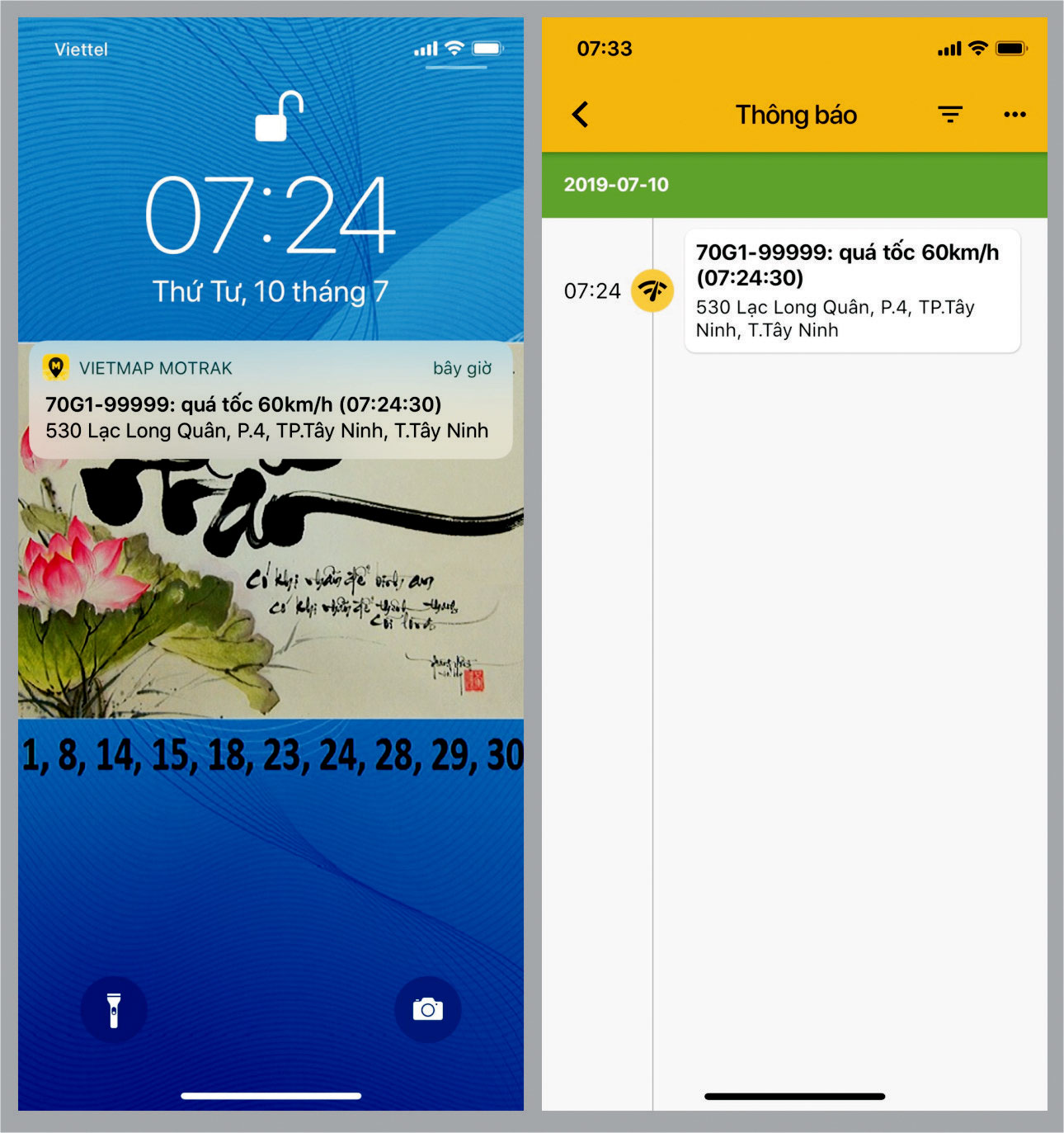 + Cảnh báo “Quá tốc độ”: khi xe chạy quá tốc độ ta đã thiết lập (giới hạn tùy chỉnh) thì trên phần mềm sẽ cảnh báo cho ta biết xe đang trạng thái quá tốc độ cho phép.