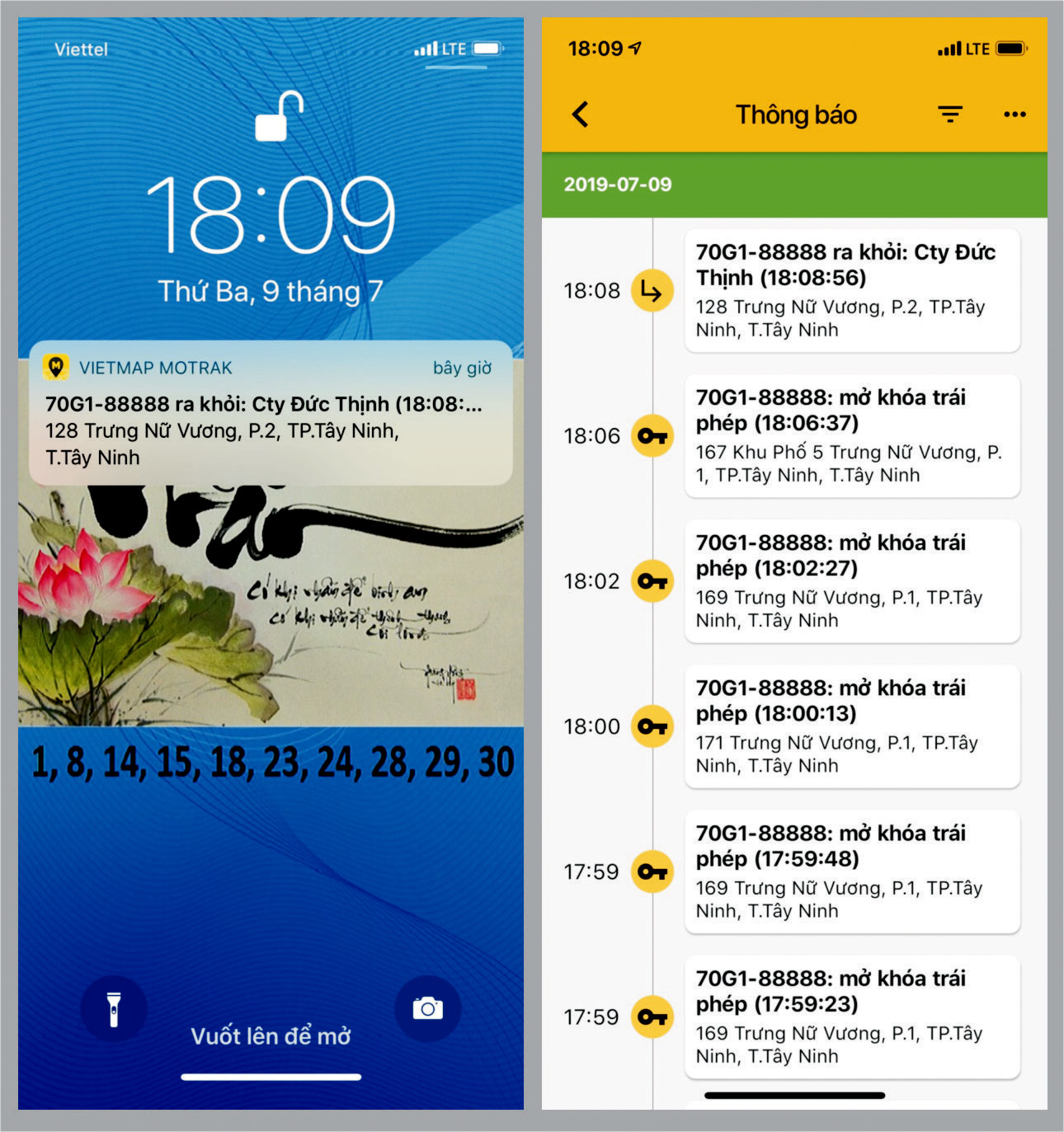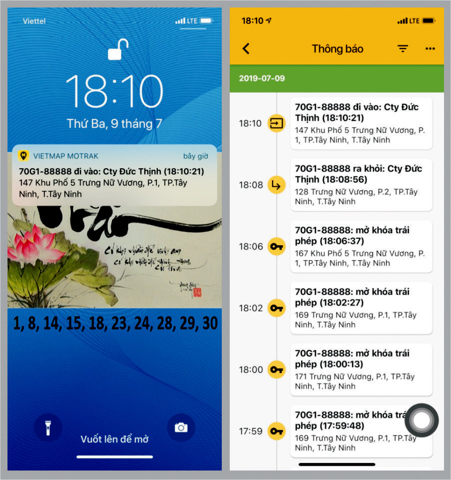 + Cảnh báo “Mở khóa trái phép”: khi có người bật chìa khóa xe thì trên phần mềm sẽ báo cho ta biết có người đã mở khóa xe.