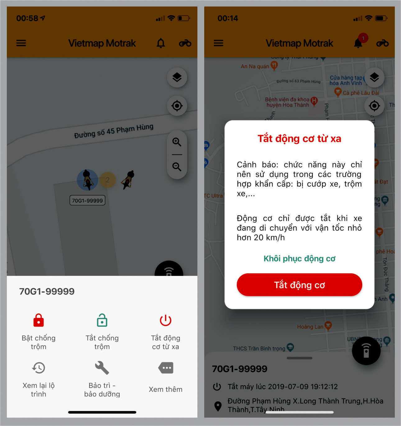 - Cho phép người dùng tắt máy xe từ xa thông qua phần mềm trên di động, khi phát hiện xe bị mất trộm.