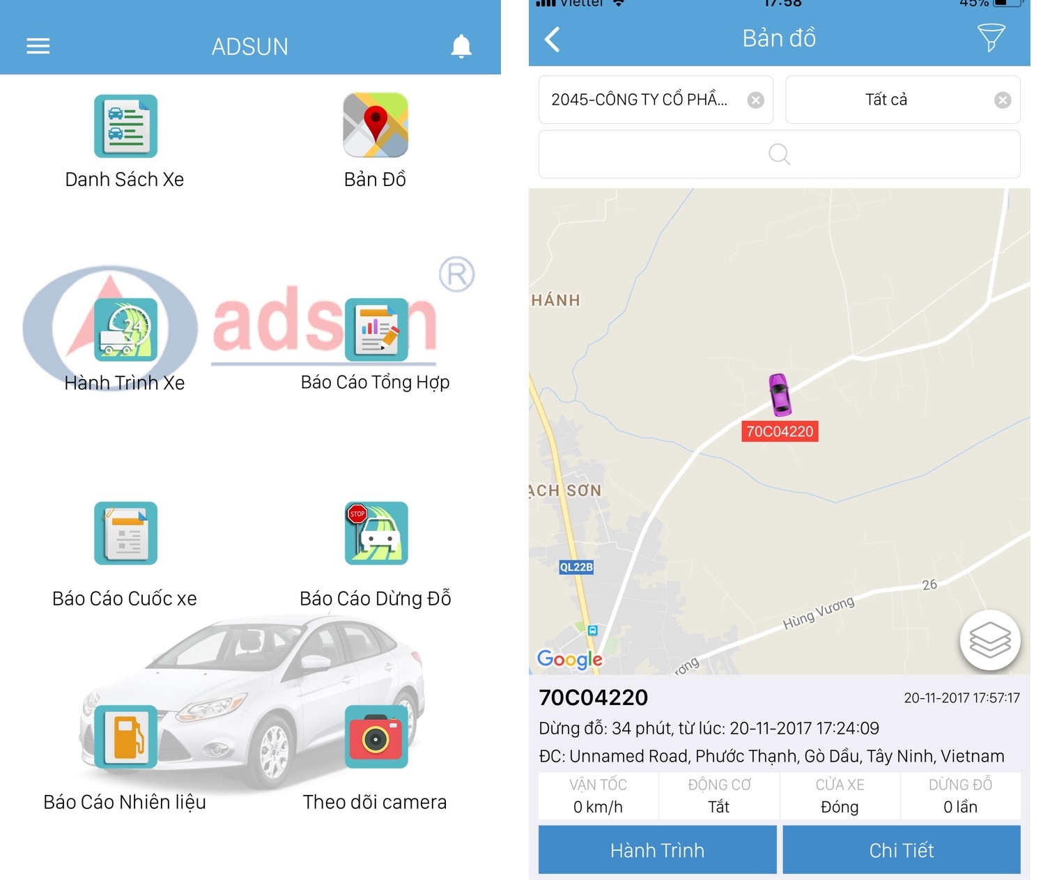 Giao diện quản lý trên xe trên điện thoại :