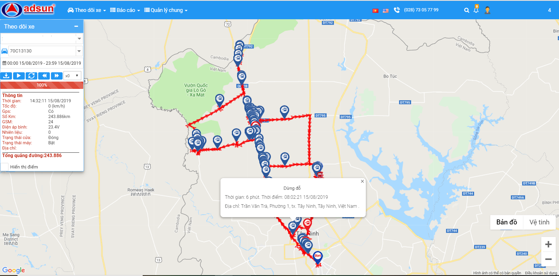 - Lên sóng GPS xe thứ 02 thiết bị định vị xe ô tô Adsun – T100 cho khách ở Trảng Bàng