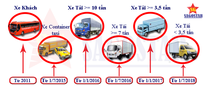 - Trước ngày 01 tháng 7 năm 2018 đối với xe ô tô kinh doanh vận tải hàng hóa có trọng tải thiết kế dưới 3,5 tấn.