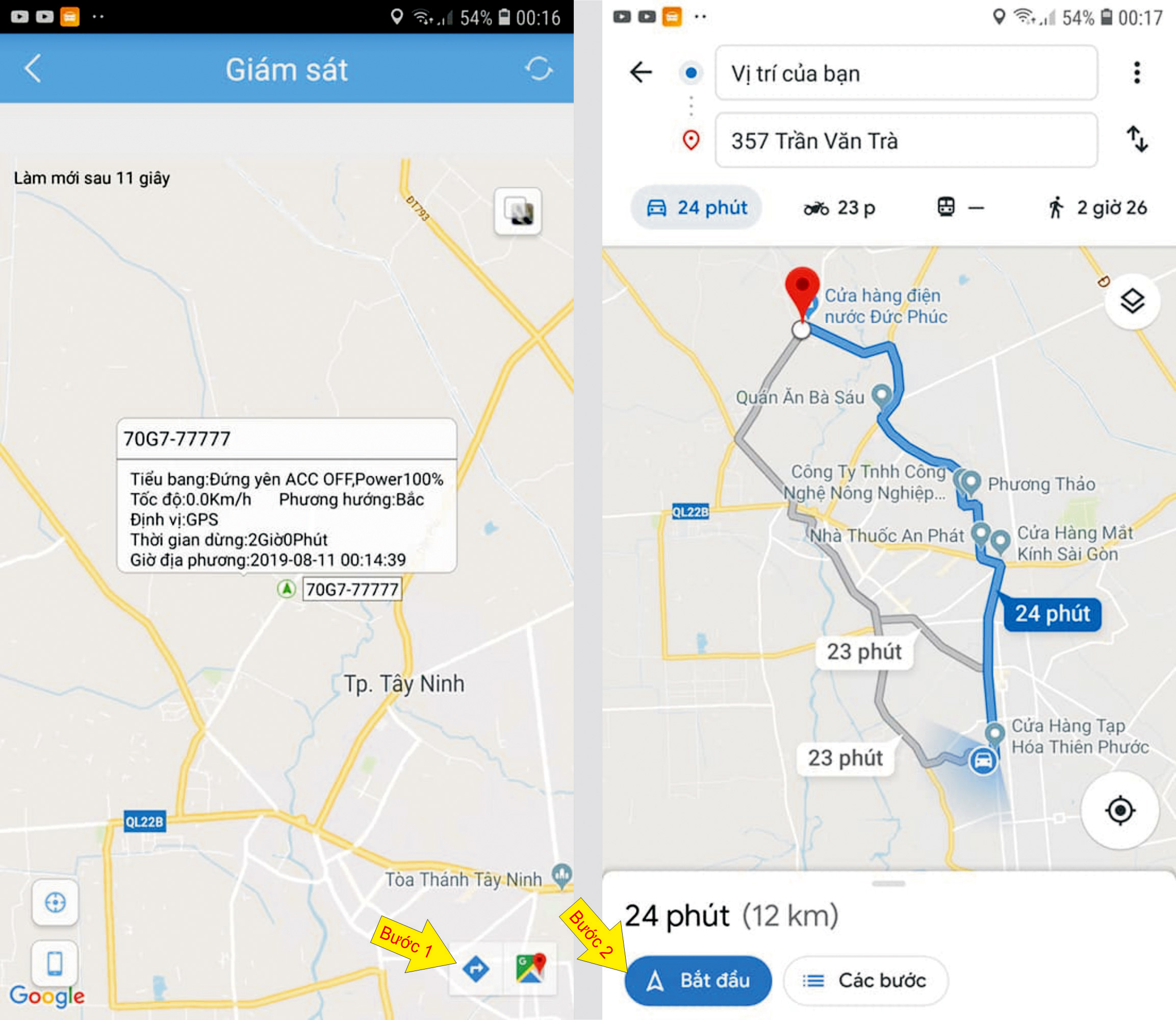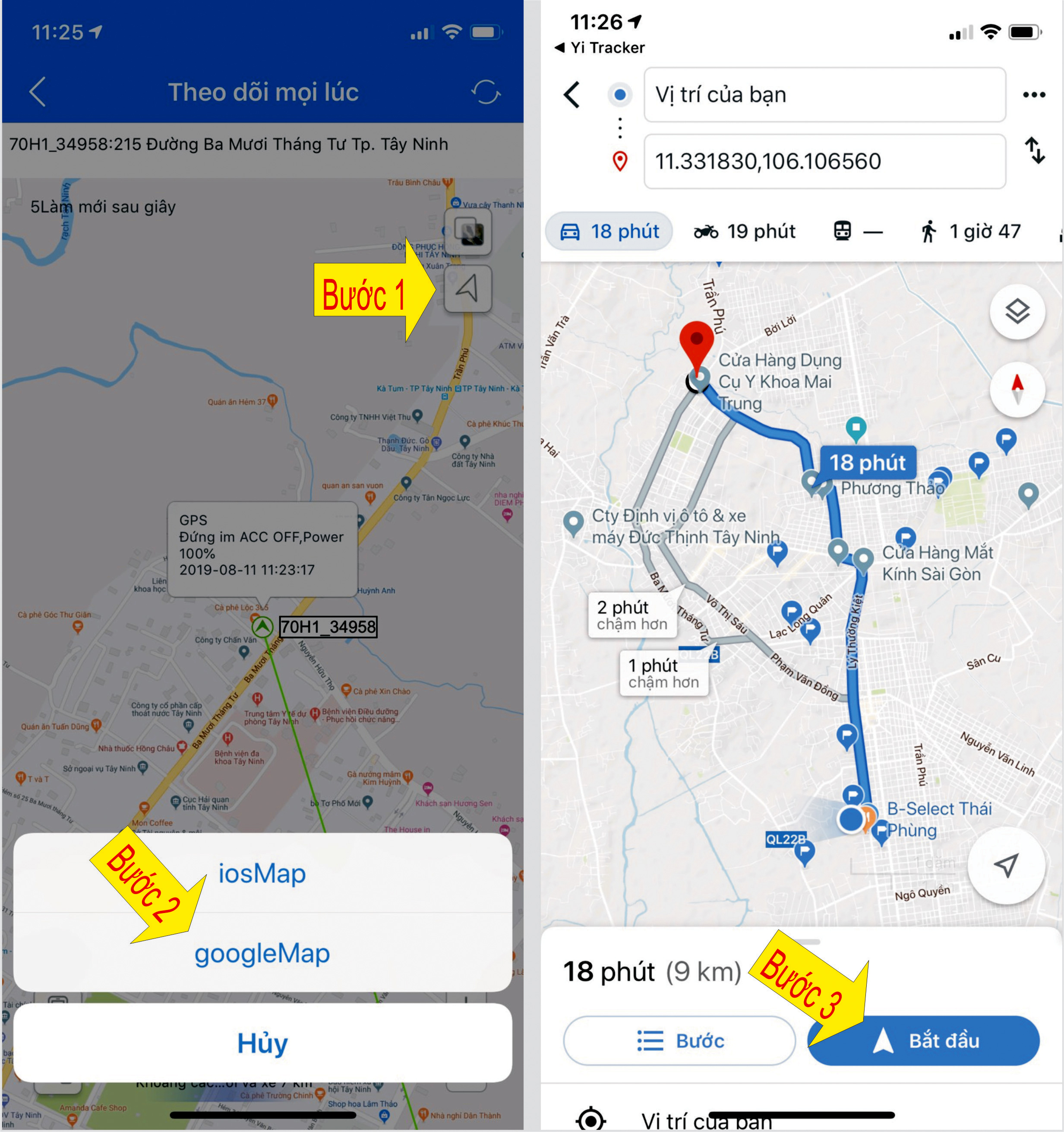 1. Xác định vị trí xe.