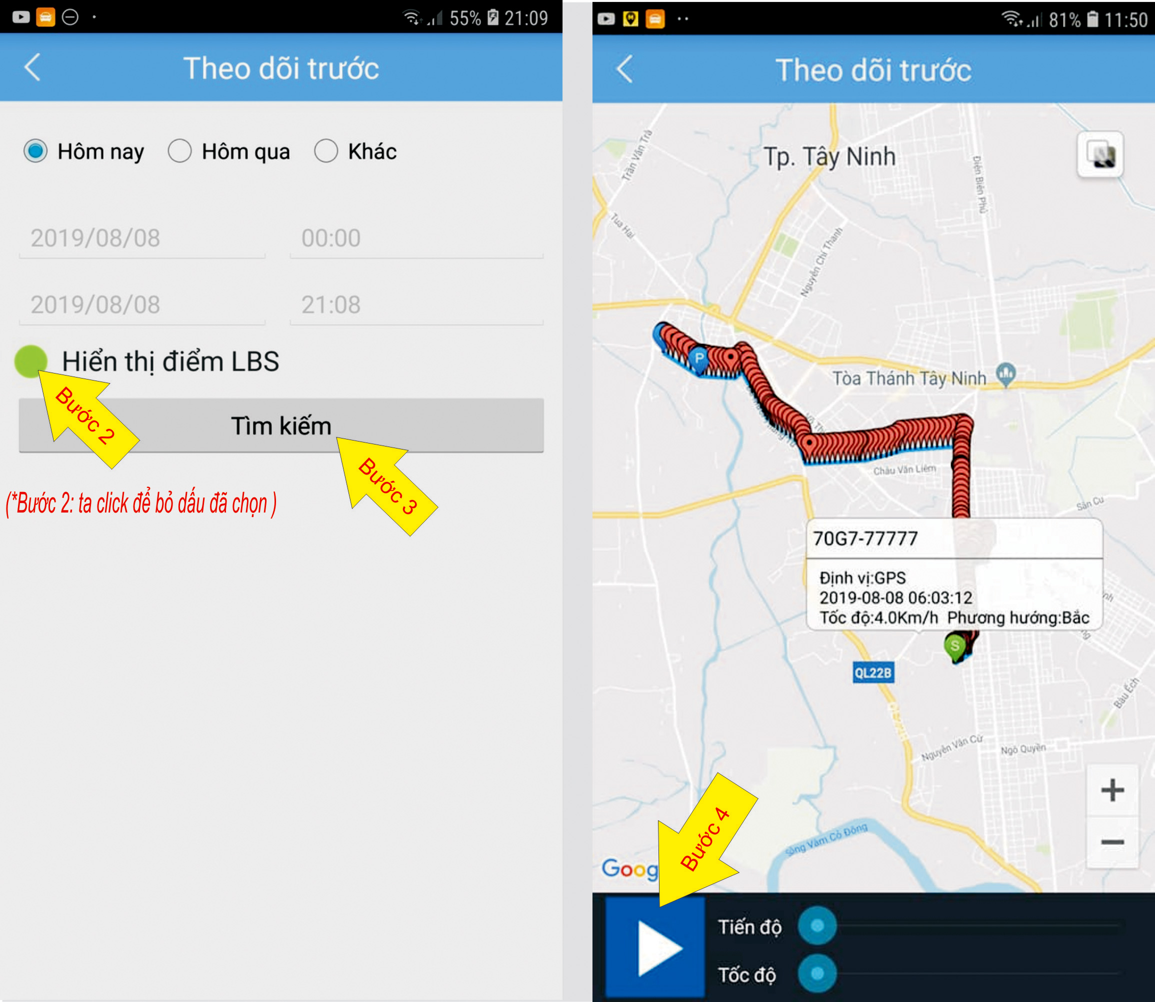 * Xem lại lịch sử lộ trình đã đi: