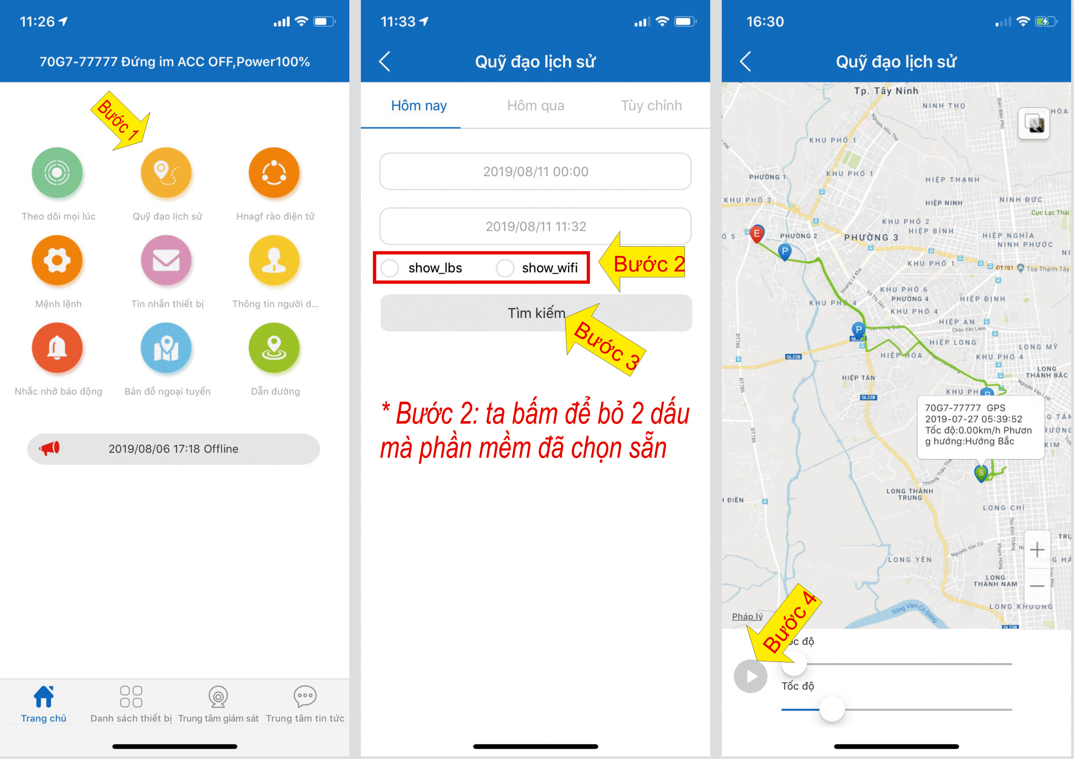 2. Xem lại lịch sử lộ trình xe đã đi.