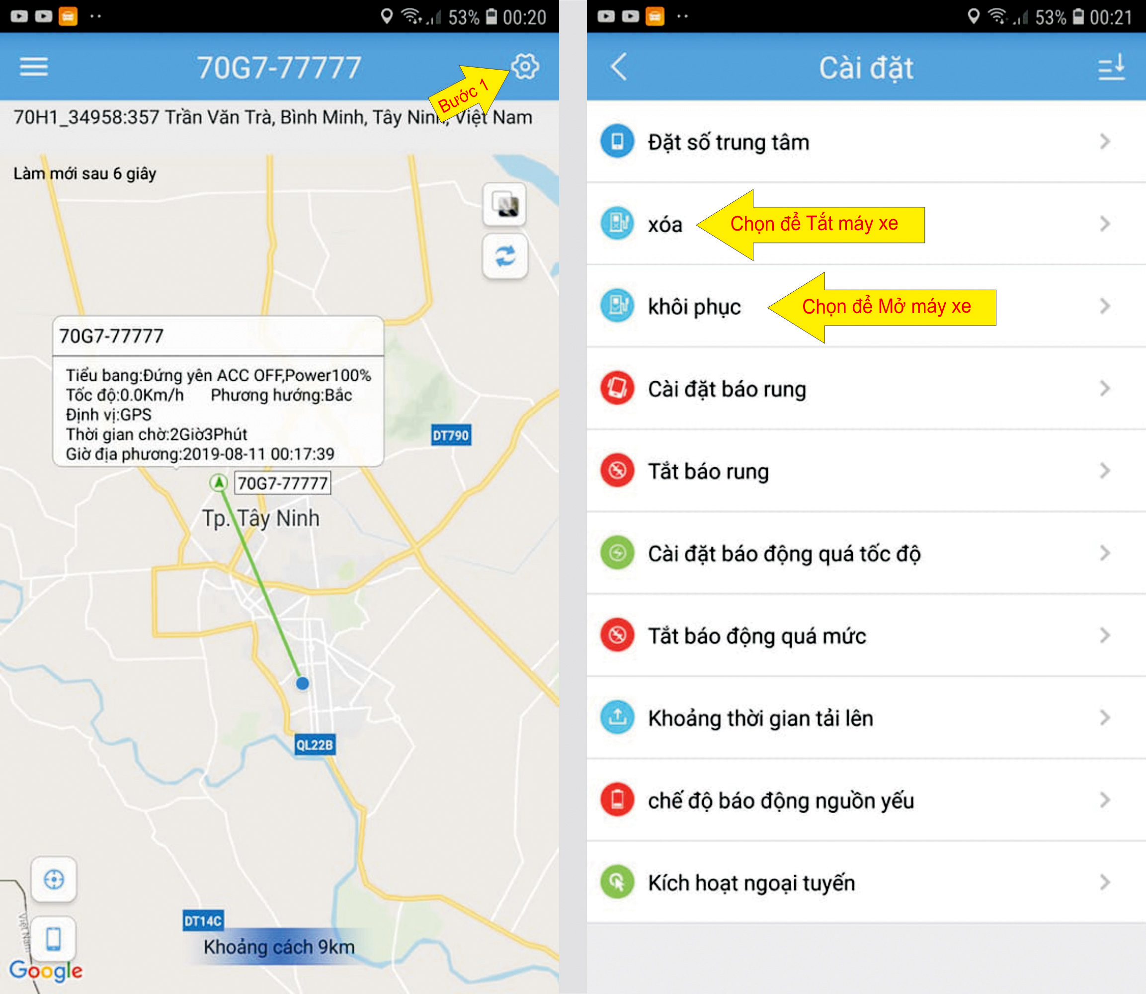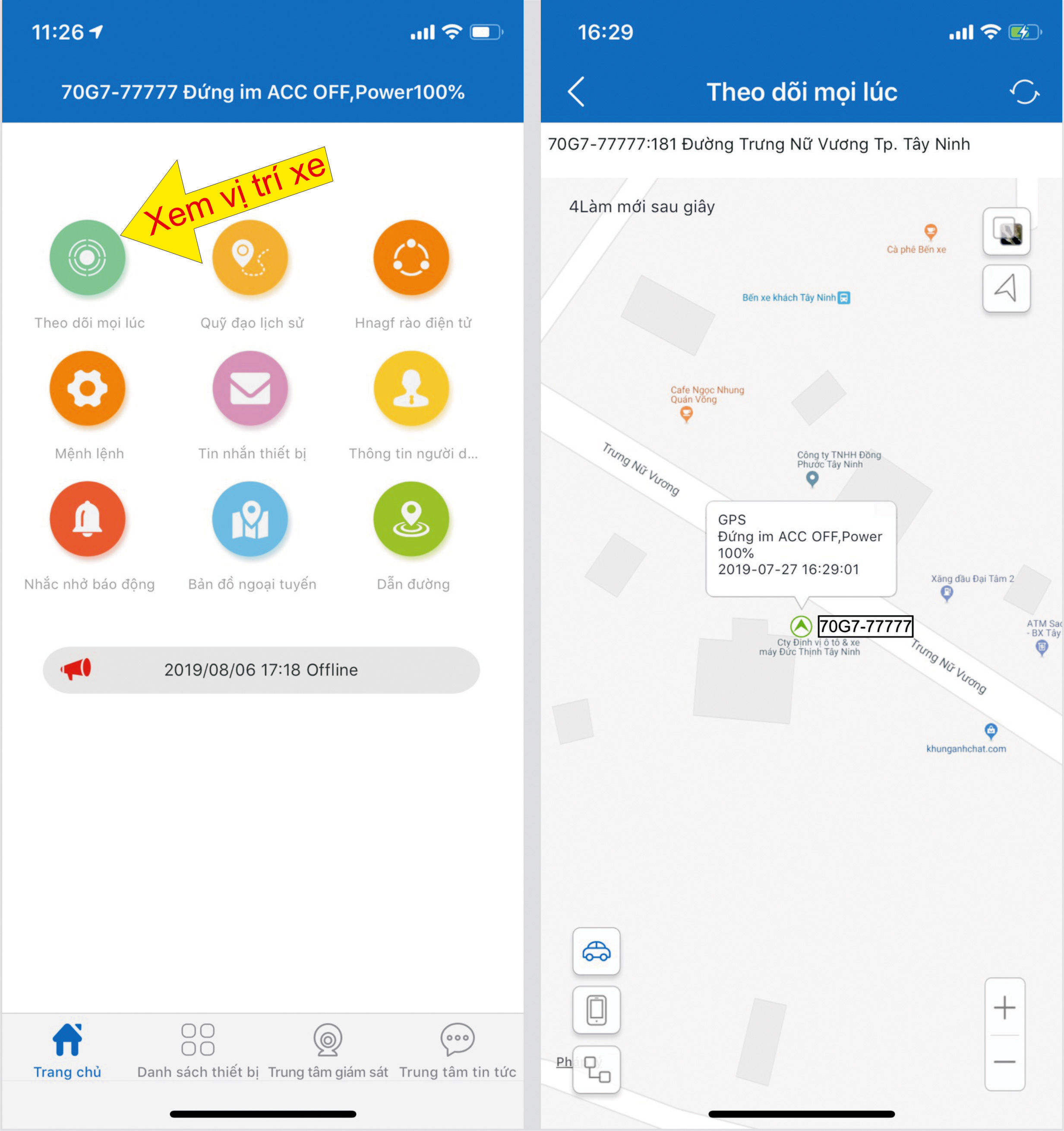 * Xem vị trí xe: