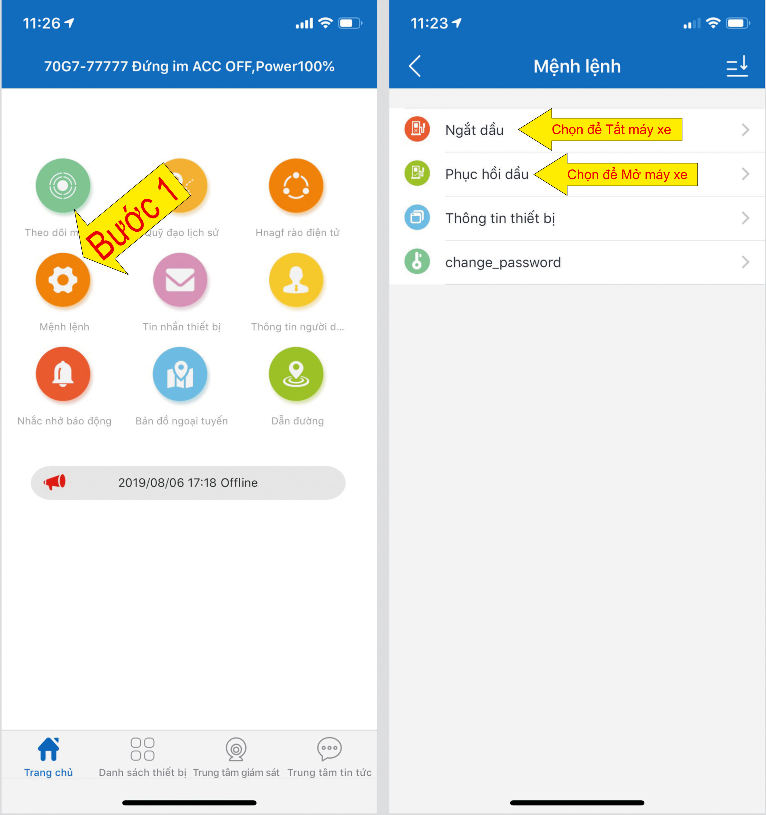 * Tắt / Mở máy xe từ xa: