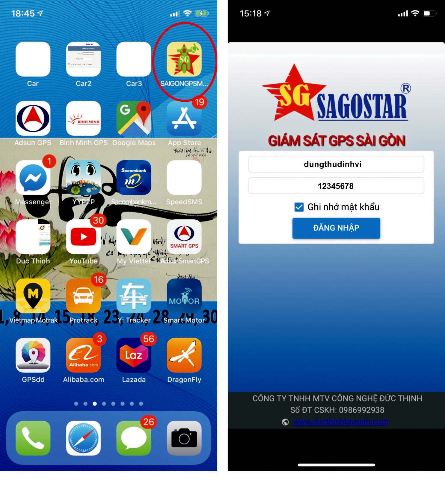 Sau khi cài phần mềm SAIGON GPS MOTO vào điện thoại, quý khách đăng nhập với thông tin như sau :